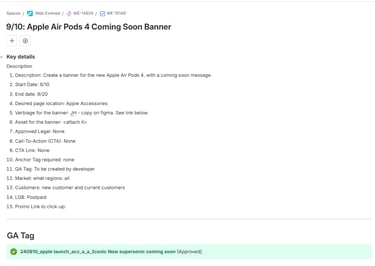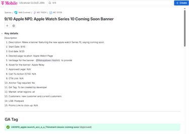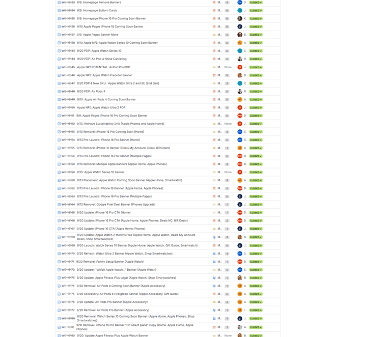 I created a dedicated Apple Launch Epic that contained detailed tickets for: